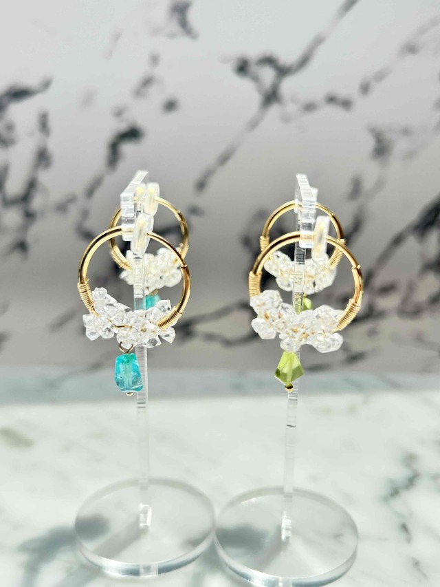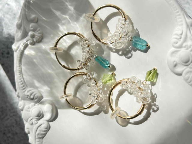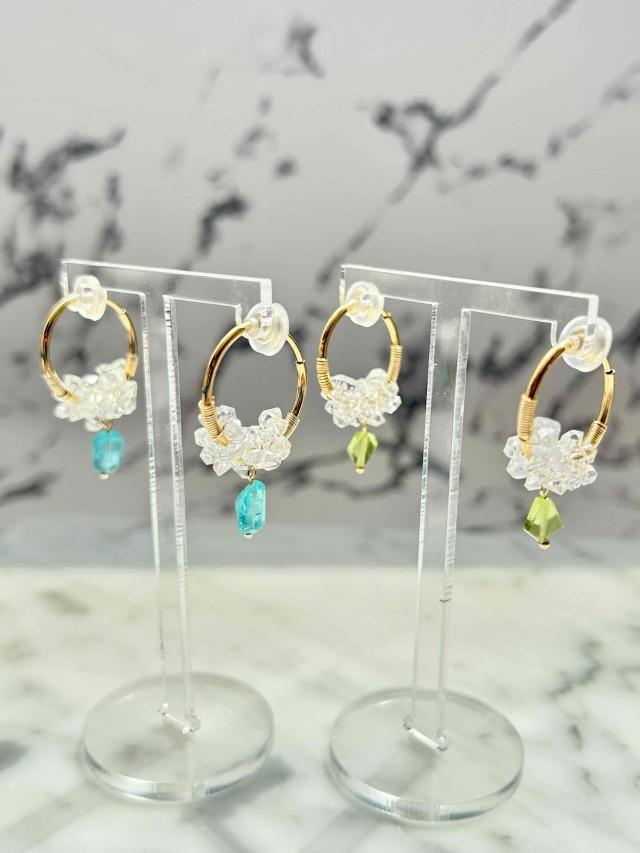天然石と小粒のCRYSTALを組み合わせたフープイヤリングです。