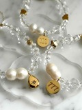 ツイン淡水パールとラッキーチャームのクリアブレスレットです。