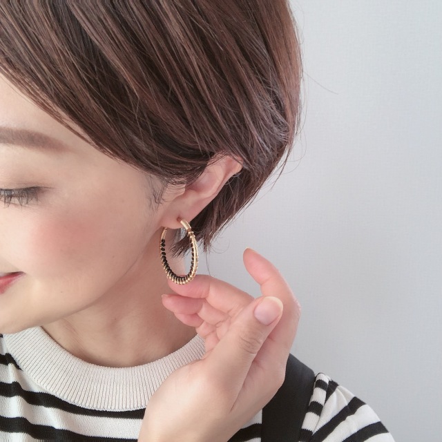 カジュアルにもキレイ目にもお使い頂けるフープイヤリングです。