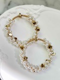 華奢なフープイヤリングにパールとメタリックダイスを丁寧に巻き付けたフープイヤリングです。