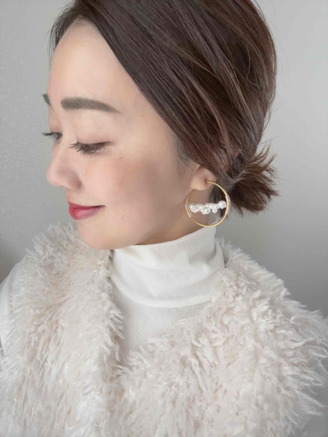 パールはツイストさせ、ボリュームを出しつつ大人上品な雰囲気を演出できるようなバランスで丁寧に巻き付けております。