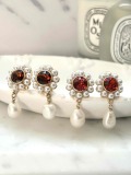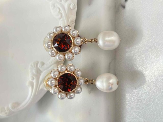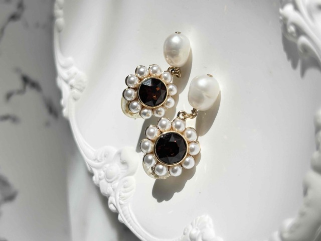 パッと目を惹くパールフラワーとコロンと可愛い淡水パールのイヤリングです。