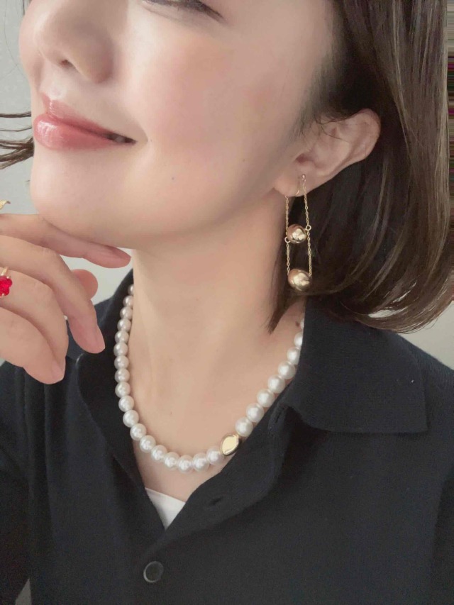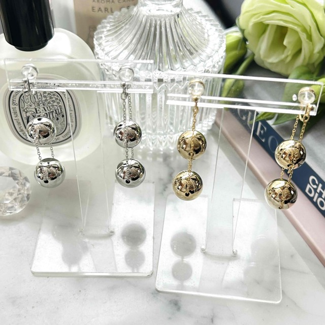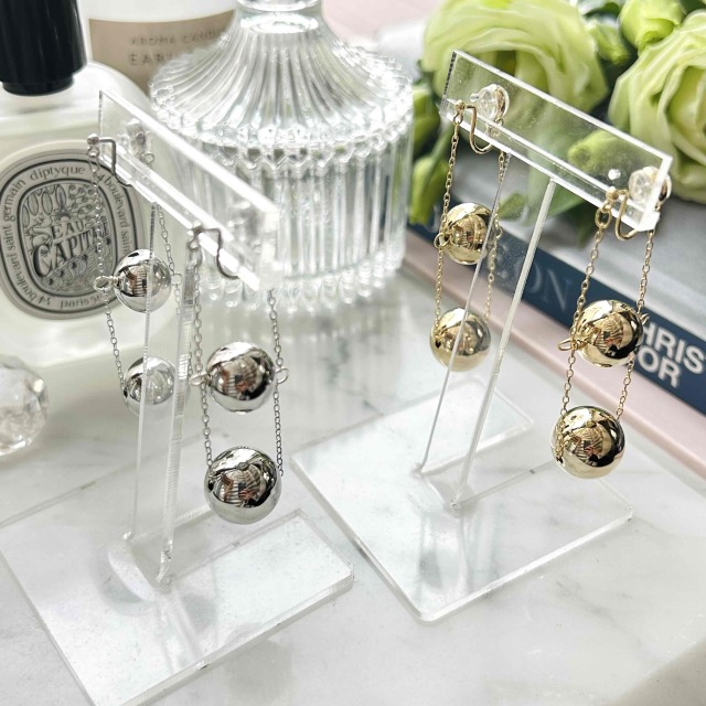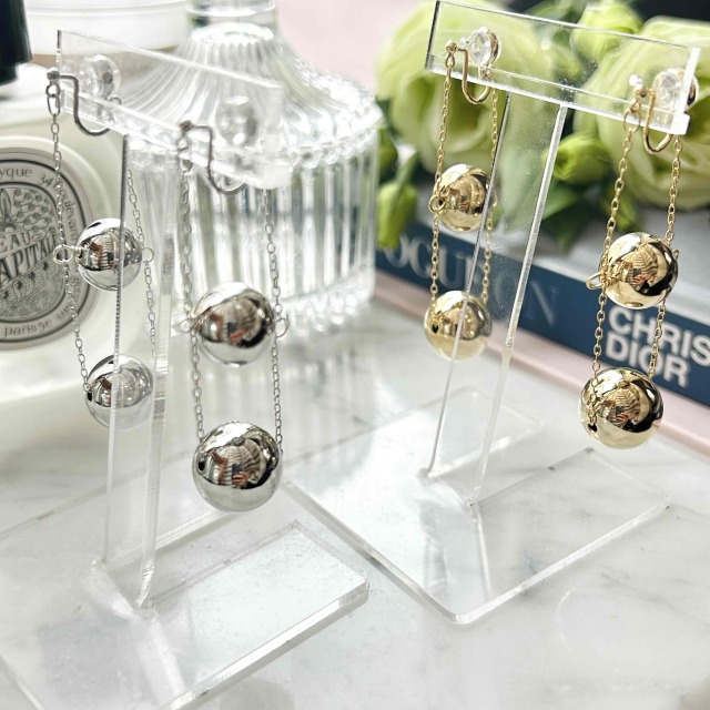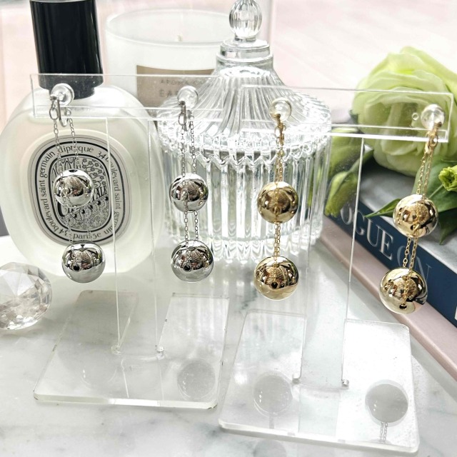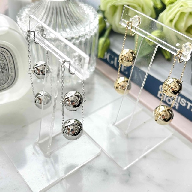 サイズ違いのメタルボールが連なった大人リッチなノンホールピアスです。
