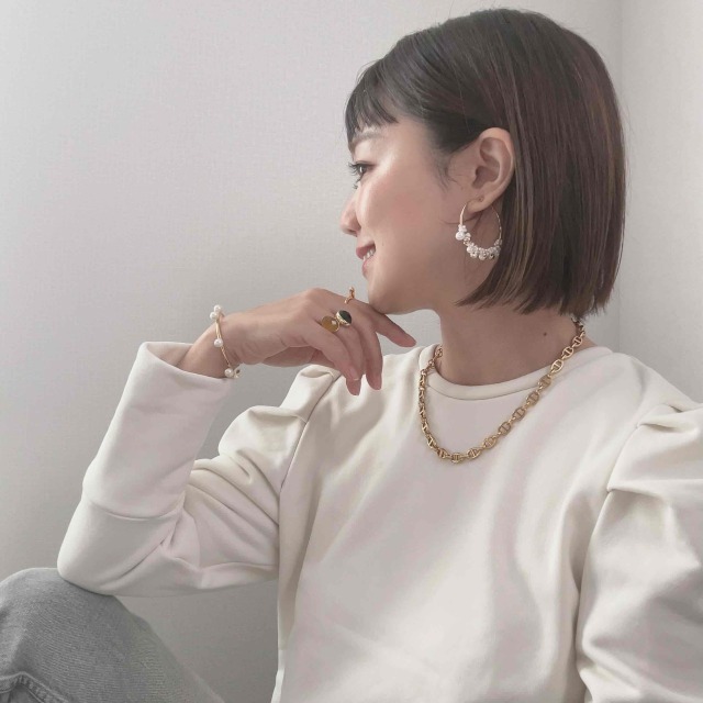 華やかで顔周りをパッと華やかにしてくれるフープイヤリングです。